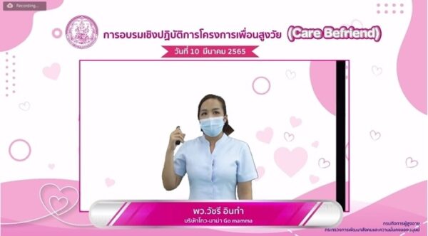 วันที่ 10 มี.ค. 2565 เวลา 09.25 น. กระทรวงการพัฒนาสังคมและความมั่นคงของมนุษย์ (พม.) โดย กรมกิจการผู้สูงอายุ (ผส.) จัดอบรมเชิงปฏิบัติการโครงการเพื่อนสูงวัย (Care Befriend) เพื่อเสริมสร้างทักษะความรู้ในการช่วยเหลือดูแลผู้สูงอายุอย่างมีประสิทธิภาพ และเป็นการสร้างโอกาสในการประกอบอาชีพรูปแบบใหม่ให้สอดคล้องกับบริบทของสังคมไทย ผ่านกลไกอาสาสมัครพัฒนาสังคมและความมั่นคงของมนุษย์ (อพม.) ผู้ดูแลผู้สูงอายุ และประชาชนที่สนใจ ซึ่งจัดขึ้นทั้งในรูปแบบ Onsite ณ ห้องประชุมประชาบดี ชั้น 19A กระทรวง พม. (อาคารใหม่) และรูปแบบออนไลน์ ในระหว่างวันที่ 10 – 11 มีนาคม 2565 โดยบูรณาการความร่วมมือกับหน่วยงานภาคีเครือข่ายจากบริษัทโกว-มาม่า (Go mamma) โครงการเรดี้ซีเนียร์ (Ready Senior) และสถาบันคุณวุฒิวิชาชีพ (องค์การมหาชน)