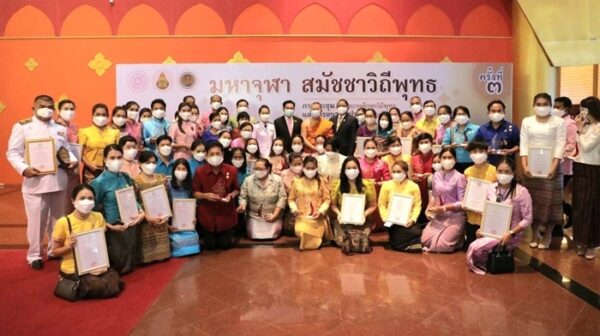 พระศรีธรรมภาณี ,ดร. ผู้ช่วยอธิการบดีฝ่ายบริหาร มจร กล่าวถวายรายงานตอนหนึ่งใจความว่า มจร โดยสํานักงานพระสอนศีลธรรม และ สํานักพัฒนานวัตกรรมการจัดการศึกษา สพฐ. ร่วมกันดําเนินการคัดเลือก และประเมินโรงเรียนที่เข้าร่วมโครงการโรงเรียนวิถีพุทธ เพื่อยกย่องประกาศเป็นโรงเรียนวิถีพุทธชั้นนํารุ่นที่ 12 และโรงเรียนวิถีพุทธพระราชทาน รุ่นที่ 4 โดยมีโรงเรียนวิถีพุทธผ่านการประเมินเป็นโรงเรียนวิถีพุทธชั้นนํารุ่นที่ 12 จํานวน 243 โรง และเป็นโรงเรียนวิถีพุทธพระราชทานรุ่นที่ 4 จํานวน 43 โรง นอกจากนี้ยังมีส่วนหนึ่งที่ มจร ร่วมกับ สพฐ. และสํานักงานคณะกรรมการการอาชีวศึกษา (สอศ.) จัดมหกรรมส่งเสริมศีลธรรมและประกวดกิจกรรมพัฒนาผู้เรียนด้านพระพุทธศาสนา ครั้งที่ 5 โดยมี กิจกรรมการประกวด 5 รายการ ประกอบด้วย