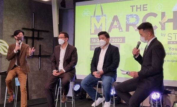 The Marché by STYLE Bangkok 2022 ในเดือนพฤษภาคมนี้ จะจัดขึ้นภายใต้แนวคิด “Global Trends, Your Styles : เทรนด์ใหม่ของโลก สไตล์ของคุณ” เพื่อแสดงศักยภาพผู้ประกอบการ BCG ไทย ในฐานะผู้ผลิตสินค้า คุณภาพที่ตอบโจทย์ตลาดและสอดรับกับเทรนด์โลก ภายในงานจะจัดแสดงสินค้าไลฟ์สไตล์และแฟชั่นรักษ์โลกโดยผู้ส่งออกจำนวน 150 ราย จากกลุ่มสินค้า Fashion & Leather, Furniture, Gifts & Premiums, Houseware, Home Décor และ Wellness บนพื้นที่ 1,200 ตารางเมตร ณ บริเวณชั้น 1 และชั้น 2 โซน Eden 1-2, Dazzle และ Beacon 2-3 และ 4 สินค้า BCG ที่นำมาจัดแสดงล้วนเป็นผลิตภัณฑ์ที่เน้นการใช้ทรัพยากรอย่างคุ้มค่า รักษาสมดุลสิ่งแวดล้อม ด้วยนวัตกรรมใหม่ๆ หรือเป็นผลิตภัณฑ์ที่สามารถนำกลับมาใช้ใหม่หรือมีกระบวนการผลิตที่เกิดของเสียน้อยที่สุด เป็นสินค้าสีเขียว ที่มุ่งเน้นการลดผลกระทบต่อโลกอย่างยั่งยืน สอดคล้องกับความ ต้องการของตลาดโลกยุค New Normal