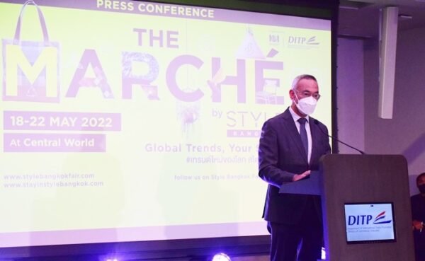 กรมส่งเสริมการค้าระหว่างประเทศ กระทรวงพาณิชย์ (DITP) แถลงเตรียมพร้อมจัดงานแสดงสินค้า The Marché by STYLE Bangkok 2022 โชว์ผลิตภัณฑ์แนวรักษ์โลกใหม่ล่าสุดตอบรับกระแสโลก พร้อมกิจกรรมเสวนาและไลฟ์สดโชว์สินค้าแบบออนไลน์ นำเสนอโปรโมชั่นพิเศษสุดปังประจำปี กระตุ้นยอดส่งออก ขับเคลื่อนเศรษฐกิจไทยฝ่าวิกฤติโควิด-19 โดยจะจัดให้มีขึ้นระหว่างวันที่ 18-22 พฤษภาคม 2565 นี้ ณ ศูนย์การค้าเซ็นทรัลเวิลด์ พร้อมจัดกิจกรรมคู่ขนาน BCG Symposium ด้วยความร่วมมือของกรมเจรจาการค้าระหว่างประเทศ ภายใต้โครงการแลกเปลี่ยนแนวปฏิบัติที่ดีของเขตเศรษฐกิจเอเปคสำหรับ Micro SMEs ที่มีนวัตกรรมเป็นมิตรกับสิ่งแวดล้อม ในวันที่ 20 พฤษภาคม 2565 ณ โรงแรมเซ็นทารา แกรนด์ แอท เซ็นทรัลเวิลด์