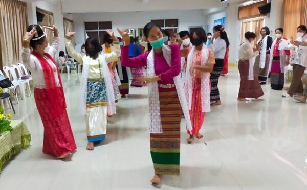 ซึ่งได้ถ่ายทอดภูมิปัญญาที่สืบกันมาอย่างยาวนาน จากรุ่นสู่รุ่น การจัดการฝึกฟ้อนรำในครั้งนี้จัดขึ้นระหว่าง วันที่ 1- 5 พค. 2565 มีผู้เข้าร่วม การฝึกฟ้อนรำ ชุดดังกล่าว จำนวน 35 คน เป็น กลุ่มสตรี และผู้สูงอายุ 30 คน เยาวชน 5 คน โดยได้รับงบประมาณ จากกองทุนผู้สูงอายุ สนง พมจ.เพื่อเป็นการสืบสานการรำไตชุด การก้าปั๋นก๋อง ให้ อยู่คู่ จ. แม่ฮ่องสอนสืบต่อไป