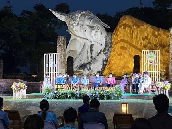 เมื่อวันที่ 6 พ.ค.65 นายศักดิ์ดา บรรดาศักดิ์ รองผู้ว่าราชการจังหวัดอ่างทอง พร้อมด้วยนายอภิชาติ ศรีเหรา นายอำเภอโพธิ์ทอง , นางสาวพิมพกานต์ พิพิธธนานันท์ ผู้อำนวยการการท่องเที่ยวแห่งประเทศไทยจังหวัดสุพรรณบุรี , นางวันทนีย์ มีแสง วัฒนธรรมจังหวัดอ่างทอง , พล.ต.ต.วิชิต บุญชินวุฒิกุล ผู้บังคับการตำรวจภูธรจังหวัดอ่างทอง , นายแพทย์ธนวัฒน์ วงษ์ผัน นายแพทย์สาธารณสุขจังหวัดอ่างทอง และ รองศาสตราจารย์สมภพ เขียวมณี ผู้อำนวยการวิทยาลัยนาฎศิลป์อ่างทอง ร่วมแถลงข่าวการจัดงาน “ห่มผ้าพระนอน ขอพรพระใหญ่ จังหวัดอ่างทอง ประจำปี 2565” ณ บริเวณพุทธมณฑลจ.อ่างทอง วัดขุนอินทประมูล อ.โพธิ์ทอง จ.อ่างทอง โดยภายในงานมีกิจกรรมการแสดงโขน Hight Light ชุด “หนุมานจับนางสุพรรณมัจฉา ”