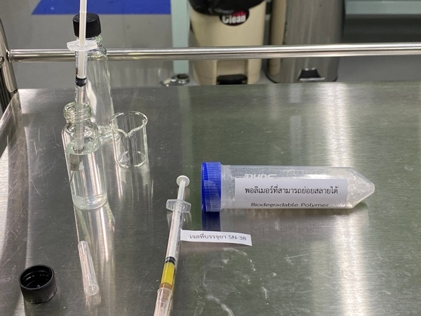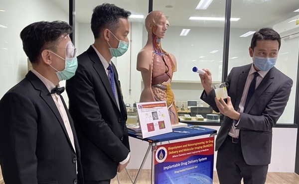 โดยปัจจุบันวิธีรักษาที่ใช้กับโรคมะเร็งเป็นหลัก ได้แก่ การทำเคมีบำบัด (Chemotherapy) การผ่าตัด และการฉายรังสี ซึ่งวิธีดังกล่าวยังมีข้อจำกัดและผลข้างเคียงสูง ดังนั้นเพื่อแก้ปัญหานี้ ทางทีมนักวิจัยจึงได้พัฒนา นวัตกรรม ‘ระบบส่งยาฉีดรักษามะเร็งสมองจากเจลชีวพอลิเมอร์’ ที่สามารถส่งตรงยาหรือสารออกฤทธิ์ต่างๆ ไปยังเป้าหมายเซลล์มะเร็งหรือเนื้องอกในสมองได้อย่างตรงจุด ซึ่งจะช่วยลดการสูญเสียปริมาณยา รวมถึงลดการเกิดความเป็นพิษต่อเซลล์และอวัยวะปกติได้เป็นอย่างดี
