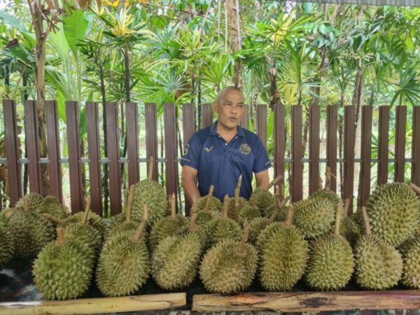 ครูโอ๊ะลงพื้นที่ในครั้งนี้ เพื่อเยี่ยมชมสวนทุเรียน GI ศูนย์เรียนรู้ต้นแบบ “ริมปรือบ้านสวน” และประเดิมตัดทุเรียน GI ลูกแรก ซึ่งเป็นทุเรียนเฉพาะพื้นที่ รสชาติดี มีเอกลักษณ์ของพื้นถิ่น โดยกรมทรัพย์สินทางปัญญา กระทรวงพาณิชย์ ได้ประกาศขึ้นทะเบียน “ทุเรียนปราจีน” ของจังหวัดปราจีนบุรี เป็นสินค้าสิ่งบ่งชี้ทางภูมิศาสตร์ (Geographical Indication : GI)