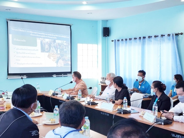 ดร.ฐิระ ทองเหลือ หัวหน้าชุดโครงการวิจัยรายงานถึงความคืบหน้าของการดำเนินงาน โครงการ “ชุมพรโมเดล” จากสโลแกนคือ