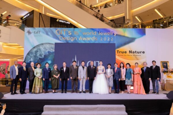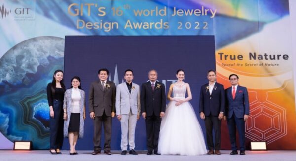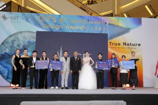 วันที่ 5 กันยายน 2565: สถาบันวิจัยและพัฒนาอัญมณีและเครื่องประดับแห่งชาติ (องค์การมหาชน) หรือ GIT จัดพิธีมอบโล่รางวัล พระราชทานจากสมเด็จพระเจ้าน้องนางเธอ เจ้าฟ้าจุฬาภรณวลัยลักษณ์ อัครราชกุมารี กรมพระศรีสวางควัฒน วรขัตติยราชนารี และประกาศผลผู้ชนะเลิศโครงการ GIT World’s Jewelry Design Awards ครั้งที่ 16 พร้อมเผยโฉม 4 ผลงานสุดท้าย ใน ธีม True Nature – Reveal the Secret of Nature ลุ้นรางวัลรวมมูลค่ากว่า 360,000 บาท (10,000 USD) โดยได้รับเกียรติจาก นายสินิตย์ เลิศไกร รัฐมนตรีช่วยว่าการกระทรวงพาณิชย์ ให้เกียรติเป็นประธานในพิธี ณ ลานแฟชั่นฮอลล์ ชั้น 1 ศูนย์การค้าสยามพารากอน