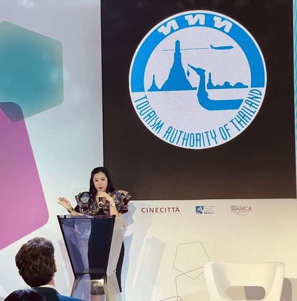 บ่ายวานนี้ นางสาวฐาปนีย์ เกียรติไพบูลย์ รองผู้ว่าการด้านตลาดในประเทศ การท่องเที่ยวแห่งประเทศไทย (ททท.) ได้รับเกียรติเชิญบรรยาย “Focus Thailand” ณ Italian Pavilion โดยได้เชิญชวนผู้สร้าง ผู้ถ่ายทำและนักลงทุนในอุตสาหกรรมภาพยนตร์ ที่ร่วมงาน Venice International Film Festival 2022 ให้เดินทางถ่ายทำภาพยนตร์ในประเทศไทย ซึ่งมีความโดดเด่นในด้าน Location ที่มีศักยภาพและมีความแตกต่างใน 5 ภูมิภาคของไทย รวมถึง ได้ฉายหนัง Amazing New Chapters ทิศทางการส่งเสริมการท่องเที่ยว