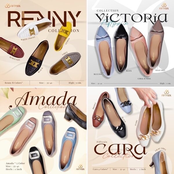 รองเท้าหนังแกะแบรนด์ FIFTY SIX มีไซส์ตั้งแต่ 35-41 ใส่สบายไม่เจ็บเท้า เพราะทำจากหนังแกะคุณภาพ พื้นรองรับน้ำหนักตัวและรูปเท้า มีให้เลือกทั้งแบบคัทชู รุ่น Renny, รุ่น Victoria / แบบส้นเตี้ย 1 นิ้ว รุ่น Amada / แบบส้นสูง 2 นิ้ว รุ่น Cara, รุ่น I-rish, รุ่น Josie, รุ่น Moderna, รุ่น Anna Glossy, รุ่น Elsa และแบบส้นสูง 3.2 นิ้ว รุ่น Midnight Glossy, รุ่น Elsa Metal โดยแต่ละรุ่นมีหลากสีให้เลือก สามารถช้อปได้แล้ววันนี้ที่ Lazada: fiftysixthailand, Shopee: fiftysixshoes, Line OA: @56shoe, Instagram: fiftysix56.shoes ดูรายละเอียดเพิ่มเติมที่ Facebook: Fiftysix Thailand