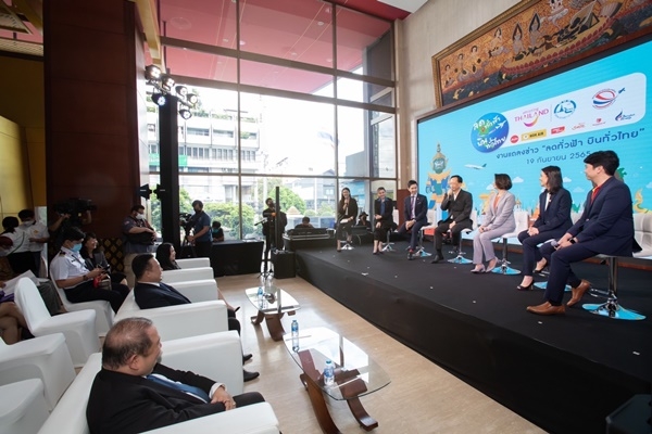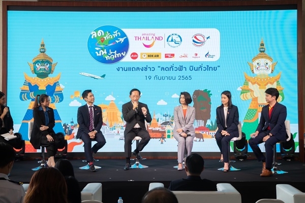 บ่ายวันนี้ (19 กันยายน 2565) นายยุทธศักดิ์ สุภสร ผู้ว่าการการท่องเที่ยวแห่งประเทศไทย และนายพุฒิพงศ์ ปราสาททองโอสถ นายกสมาคมสายการบินประเทศไทย ให้เกียรติร่วมงานแถลงข่าวเปิดตัวโครงการ “ลดทั่วฟ้าบินทั่วไทย” ซึ่งการท่องเที่ยวแห่งประเทศไทย (ททท.) ร่วมกับสมาคมสายการบินประเทศไทย ซึ่งประกอบไปด้วย 6 สายการบิน ได้แก่ บางกอกแอร์เวย์ส ไทยแอร์เอเชีย ไทยสมายล์ นกแอร์ ไทยไลอ้อนแอร์ และไทยเวียตเจ็ท จัดงานแถลงข่าวเปิดตัวโครงการ “ลดทั่วฟ้า บินทั่วไทย” เพื่อมอบส่วนลดพิเศษให้แก่ผู้โดยสารสายการบิน และเพื่อเป็นการกระตุ้นเศรษฐกิจผ่านการเดินทางทางอากาศทั่วทุกภูมิภาคในประเทศในช่วงฤดูกาลท่องเที่ยวที่กำลังจะมาถึง โดย ททท. มอบส่วนลดค่าบัตรโดยสารเครื่องบิน 300 บาทต่อ 1 หมายเลขการจอง หรือ 1 Booking