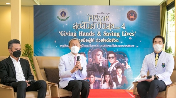 วันนี้ (20 ก.ย. 65 ) เวลา 11.00 น. ศ. ดร. นพ.ประสิทธิ์ วัฒนาภา คณบดีคณะแพทยศาสตร์ศิริราชพยาบาล ม.มหิดล และประธานมูลนิธิโรคมะเร็ง รพ.ศิริราช เป็นประธานการแถลงข่าว คอนเสิร์ตการกุศล ศิริราชสุขสันต์ปันสุข 4 “Give Hands & Saving Lives ด้วยมือผู้ให้ ด้วยใจต่อชีวิต” ช่วยผู้ป่วยมะเร็งยากไร้ศิริราช ร่วมกับ นายวิทูร เลิศพนมวรรณ ผู้แทนกรรมการจัดคอนเสิร์ตการกุศลศิริราชสุขสันต์ปันสุข ครั้งที่ 4 และคณะกรรมการจัดงาน โดยมี นางลาวัลย์ กันชาติ ประธานบริษัท เจ เอส แอล โกลบอล มีเดีย จำกัด ศ.เกียรติคุณ นพ.ไพรัช เทพมงคล เลขานุการมูลนิธิโรคมะเร็ง รพ.ศิริราช พร้อมด้วย สปาย-ภาสกรณ์ รุ่งเรืองเดชาภัทร์ นักร้องจากเวที Golden song ร่วมแสดงมินิคอนเสิร์ตแก่ผู้มาร่วมงาน ณ โถงธนบุรี อาคารพิพิธภัณฑ์ 2 พิพิธภัณฑ์ศิริราชพิมุขสถาน