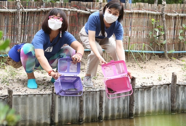 หลังจากนั้น จิตอาสาของช่อง 3 และพิธีกรรายการแซ่บพาซ่าส์ ร่วมกันปล่อยปูคืนชีวิตสู่ธรรมชาติ ณ บริเวณพระเจดีย์กลางน้ำ จังหวัดระยอง ตามด้วยการล่องเรือชมป่าชายเลน และเยี่ยมชม “ตึกกี่พ้ง” อาคารพาณิชย์ที่มีสถาปัตยกรรมแบบชิโน-โปรตุกีส เป็นอาคารพาณิชย์แห่งแรกของจังหวัดระยองที่รุ่นลูกหลานอนุรักษ์สืบต่อกันมาบนถนนชุมพล คู่ขนานกับถนนยมจินดา