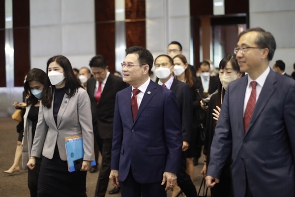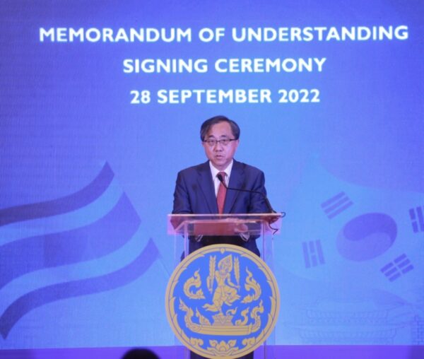 นายมุน ซึง-ฮยอน(H.E. Mr. Moon Seoung-Hyun) เอกอัครราชทูตสาธารณรัฐเกาหลีประจำประเทศไทย กล่าวว่า ตนได้อ่านหนังสือพิมพ์เกี่ยวกับเศรษฐกิจของประเทศไทยซึ่งน่าภูมิใจเป็นอย่างมาก และได้มีการเซ็น MOU กับเมืองปูซานด้วย ซึ่งพัฒนาการค้าระหว่าง 2 ประเทศเกิดผลอย่างมากมาย ตนเล็งเห็นว่าการค้าระหว่าง 2 ประเทศ ยังมีโอกาสอีกมากที่จะขยายและเติบโต จึงมีงานจัดจึงมีการจัดงาน G-FAIR KOREA 2022 (Korea Sourcing Fair in Bangkok) เกิดขึ้น ตนหวังเป็นอย่างยิ่งว่าจะมีผลต่อเศรษฐกิจทั้งประเทศไทยและเกาหลีเติบโตไปด้วยกัน และจังหวัดคยองกีเป็นจุดศูนย์กลางของบริษัทใหญ่ๆทั้ง Samsung และบริษัทอุปกรณ์อิเล็กทรอนิกส์ และมีการทำซอฟพาวเวอร์ พัฒนาเศรษฐกิจ จัดกิจกรรมเพื่อกระตุ้นเศรษฐกิจทั้งสองประเทศร่วมกัน และตนมีความประทับใจในโครงการ Mini-FTA เป็นพิเศษ ตนเห็นว่าเราสามารถปรับโครงการนี้เป็นความสัมพันธ์ระหว่างเศรษฐกิจไทย-เกาหลีได้เป็นอย่างดี และมี RCEP อีก ซึ่งตนหวังเป็นอย่างยิ่งว่าจะมีการนำแนวทาง Mini-FTA ร่วมกับ RCEP กระตุ้นเศรษฐกิจของสองประเทศไปร่วมกัน