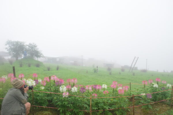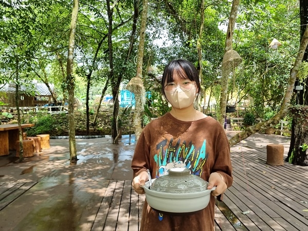 ออกจากม่อนหมอกตะวันแล้ว นักท่องเที่ยวยังสามารถแวะรับประทานอาหารในจุดชมวิวสุดชิลที่ “ญั่งสู ฟาร์มฮัก” แปลงดอกไม้บนเนินเขาเตี้ย ๆ ที่มีการปลูกไม้ดอกชนิดต่าง ๆ ตามฤดูกาล อย่างในช่วงหน้าฝนนี้ มีทุ่งดอกเสี้ยนที่กำลังชูช่อสวยงามต้อนรับนักท่องเที่ยว พร้อมมุมรับประทานอาหารอันแสนร่มรื่น มีเมนูท้องถิ่นให้เลือกลิ้มหลายรายการ รวมทั้งเมนูดเด็ดของทางร้านอย่าง “ไก่ต้มสมุนไพร” สูตรชาวม้งแท้ ๆ เพราะเจ้าของร้านญั่งสูฟาร์ม ก็คือชาวม้งที่อาศัยอยู่ในพื้นที่แห่งนี้มาตั้งแต่เกิด และได้พัฒนาพื้นที่ทางการเกษตรของตัวเอง เป็นร้านอาหารแสนสวย เป็นจุดพักผ่อนหย่อนใจที่เหมาะกับผู้ที่รักธรรมชาติ มีเมนูอร่อยหลากหลายรายการ ที่พลาดไม่ได้ก็คือ “โยเกิร์ตโฮมเมด” สูตรของทางร้าน มาในสไตล์โยเกิร์ตเกล็ดน้ำแข็งเย็นชื่นใจ รสชาติละมุนสุด ๆ