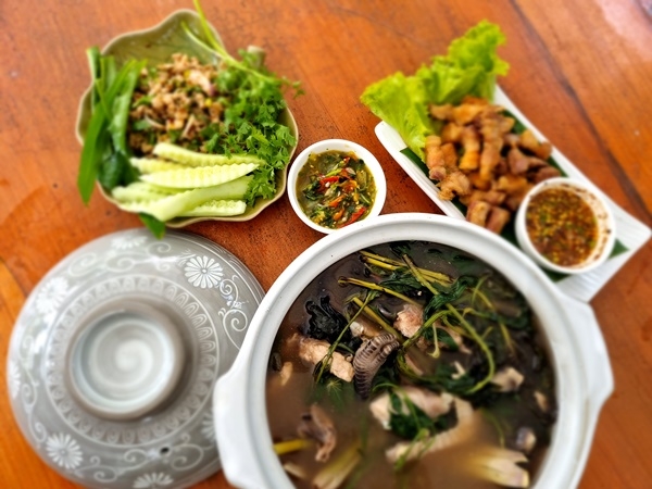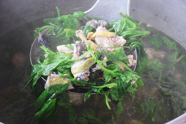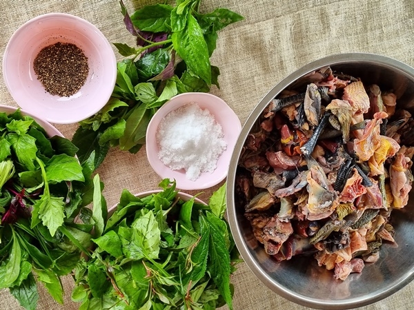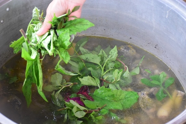เมนูไก่ต้มสมุนไพรมีกระบวนการง่าย ๆ เพียงเตรียมน้ำตั้งไฟให้เดือด ไส่เนื้อไก่ที่หั่นและล้างแล้วลงไป รอประมาณครึ่งชั่วโมงเมื่อเนื้อไก่เปื่อยได้ที่ ก็โปรยสมุนไพรนานาชนิดลงไป ปรุงรสด้วยเกลือและพริกไทยเพียงเล็กน้อย ได้รสชาติกลมกล่อม หอมกลิ่นสมุนไพรที่เต็มไปด้วยประโยชน์ ผักทุกชนิดสามารถกินได้ ไม่มีความขม แถมยังหวานอร่อย ในสมัยก่อน ใครที่ป่วยไข้ หรือเหนื่อยหน่ายจากการทำไร่ทำสวน รวมทั้งคนท้อง ก็จะต้องปรุงเมนูไก่ต้มสมุนไพรเพื่อบำรุงร่างกาย