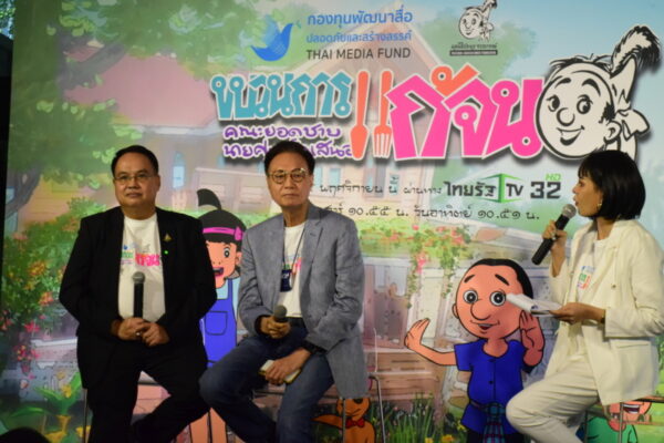 คุณจิตสุภา วัชรพล เจ้าหน้าที่บริหารสายงานกลยุทธ์และการตลาด สถานีโทรทัศน์ไทยรัฐทีวี ได้กล่าวถึงความร่วมมือในครั้งนี้ว่า ในนามของไทยรัฐทีวี มีความยินดีเป็นอย่างยิ่ง ที่ทางมูลนิธิประยูร จรรยาวงษ์ ซึ่งได้รับทุนผลิตและเผยแพร่ในรูปการ์ตูนแอนิเมชั่น ขบวนการแก้จน จากกองทุนพัฒนาสื่อปลอดภัยและสร้างสรรค์ จะนำการ์ตูนขบวนการแก้จน มาออกอากาศทางไทยรัฐทีวี ซึ่งได้จัดเวลาออกอากาศในวันเสาร์เวลา 10.55-10.57 น. และวันอาทิตย์เวลา 10.51-10.53 น. ซึ่งช่วงเวลาดังกล่าว นับว่าเป็นเวลาสำหรับครอบครัว ทั้งเด็กและผู้ใหญ่ ทุกเพศทุกวัย จึงคาดหวังว่าจะมีผู้รับชมจำนวนมากทั้งในกรุงเทพมหานครปริมณฑลและจังหวัดอื่นๆ