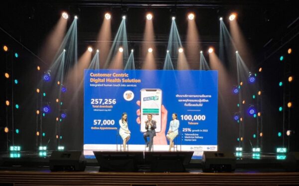 และยังมี ‘Health Up’ แอปพลิเคชันที่รวบรวมข้อมูลด้านสุขภาพ สามารถเข้าไปดูผลตรวจสุขภาพ ความรู้ด้านสุขภาพ การนัดหมายแพทย์ ตลอดจนซื้อแพ็กเกจตรวจสุขภาพได้ด้วย ซึ่งแอปพลิเคชันนี้ได้รับการตอบรับเป็นอย่างดี ปัจจุบันมียอดดาวน์โหลดใช้งานมากกว่า 265,000 ราย และมีผู้ใช้บริการทำนัดหมายพบแพทย์ผ่านแอปพลิเคชันแล้วประมาณ 57,000 ครั้งในรอบระยะเวลา 10 เดือนที่ผ่านมา นอกจากนี้ยังได้นำเทคโนโลยีดิจิทัลเข้ามาดูแลลูกค้าระบบประกันสุขภาพ (ประกันสังคม) ซึ่งปัจจุบันมีอยู่ประมาณ 600,000 กว่าคน”