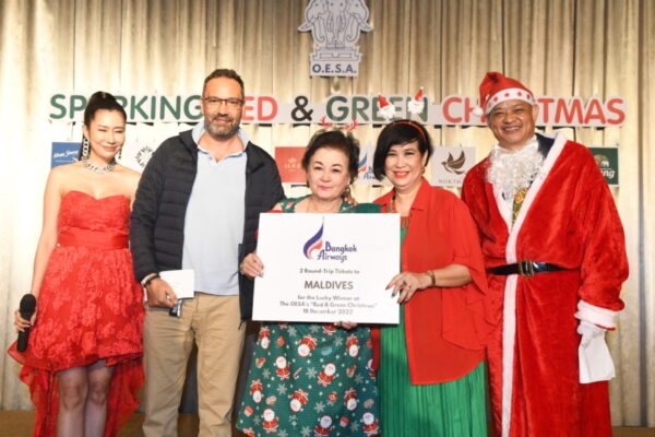 ดร.โสภาพิมพ์ เศรษฐบุตร สิมะกุลธร นายกสมาคมนักเรียนเก่าอังกฤษในพระบรมราชูปถัมภ์ (ส.น.อ.) จัดงานเลี้ยงสังสรรค์ส่งท้ายปี ภายใต้คอนเซ็ปต์ Sparkling Red & Green Christmas โดยมี ชวาลี โอสถานุเคราะห์ คุณหญิงเกิดศิริ ศรุตานนท์ ดร. จินตนันท์ ชญาต์ร ศุภมิตร