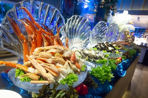 เมนูบุฟเฟ่ต์ สุดพิเศษ ที่เราจัดเตรียมไว้เสิร์ฟ ในคืนเคาท์ดาวน์มีทั้ง ปูอลาสก้า ใน ซีฟู้ดออนไอซ์ ร่วมกับ ปูม้า, หอยนางรมเกาหลีสด, กุ้งขาว, กั้ง, หอยแมลงภู่นิวซีแลนด์