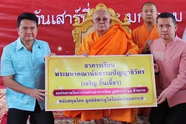 22 กุมภาพันธ์ 2558 มงคงฤกษ์งามยามดี เวลาอันประกอบกิจวางรากฐานของอาคารเรียน ศูนย์ภาษาอาเซียน “พระมหาคณานัมธรรมปัญญาอาคารสถาน” ณ พื้นที่โรงเรียนบ้านบางม่วง (ประชารังสิต) อำเภอสามพราน จังหวัดนครปฐม จตุปัจจัยทุนตั้งต้นจำนวน 3 ล้านบาท ได้รับเมตตาคุณจากพระเดชพระคุณ พระมหาคณานัมธรรมปัญญาธิวัตร (เจริญ กิ๊นเจี๊ยวมหาเถระ) เจ้าคณะใหญ่อนัมนิกายแห่งประเทศไทยรูปที่ 11 เป็นทุนตั้งต้นแห่งการสร้างอาคารสถานแห่งนี้ วิสัยทัศน์ที่มองเห็นประโยชน์ที่จะเกิดขึ้นแก่เยาวชนในอนาคต นำพาให้เกิดความดีงาม ต่อยอดให้สังคมมีความเข้มแข็ง มีคุณธรรมประจำใจ มีทักษะความรู้ที่หลากหลาย และด้วยความร่วมมือระหว่าง วัด บ้าน โรงเรียน ที่เป็นพลังแห่ง “บวร” พระพุทธศาสนา เสริมฐานที่มั่นคงให้กับสังคม ยิ่งเพิ่มความเหนียวแน่น ชี้นำทางสว่างสร้างฝันให้เป็นจริงในเร็ววัน จวบจนต้นปี พุทธศักราช 2566 อาคารแห่งนี้ได้แล้วเสร็จพร้อมอุปกรณ์การเรียนการสอน พร้อมที่จะส่งมอบให้กับสถานศึกษา ชุมชน ได้ใช้อาคารเรียนเพื่อสรรประโยชน์ด้านการศึกษา ให้กับลูกหลานได้มีปัญญา สืบไป