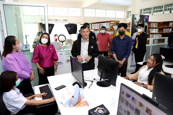 “การตรวจเยี่ยมและติดตามผลการดำเนินงานโครงการศูนย์ดิจิทัลชุมชน กศน. อำเภอเมือง จังหวัดประจวบคีรีขันธ์ (ห้องสมุดประชาชนจังหวัดประจวบคีรีขันธ์) เป็นศูนย์ดิจิทัลชุมชนที่ดำเนินการตามโครงการยกระดับศูนย์การเรียนรู้ ICT ชุมชน สู่ศูนย์ดิจิทัลชุมชน ระยะเวลาดำเนินการระหว่างปี พ.ศ. 2564 – 2567 ซึ่งได้จัดตั้งในพื้นที่ของโรงเรียน กศน. อบต. เทศบาล วัด มัสยิด และพื้นที่ชุมชน ที่มีความพร้อม จำนวน 500 แห่ง ครอบคลุม 77 จังหวัดทั่วประเทศ” นายชัยวุฒิ กล่าว