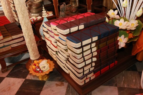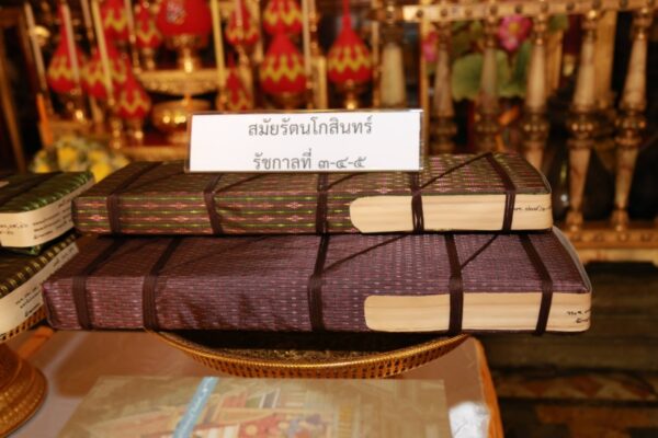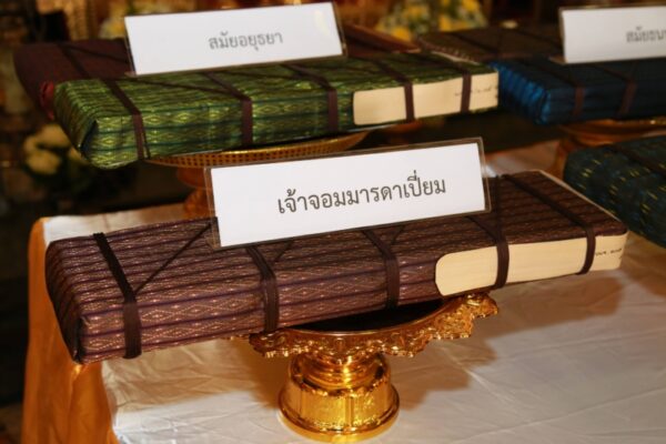 ๒. ความสำคัญของเอกสารโบราณเหล่านี้ไม่แพ้ความสำคัญของวัด โดยเฉพาะคัมภีร์ใบลานมีการสืบสายธารแห่งประวัติศาสตร์ไม่ขาดสาย ถึง ๓ สมัย ได้แก่ คัมภีร์ใบลานสมัยอยุธยา สมัยธนบุรี และสมัยรัตนโกสินทร์ รวมแล้วไม่ต่ำกว่า ๑๕๐ ผูก และพบคัมภีร์ที่เก่าแก่แต่ละสมัย ดังนี้ สมัยอยุธยา ได้แก่ วบจ.๒๒-๒๕ (วัดเบญจมบพิตร เลขที่ ๒๒-๒๕) เรื่อง วิมติวิโนทนี วินยฎีกา สมัยสมเด็จพระเจ้าปราสาทอง พ.ศ.๒๑๘๖ อายุ ๓๘๐ ปี สมัยธนบุรี ได้แก่ วบจ.๓๓๘ (วัดเบญจมบพิตร เลขที่ ๓๓๘) เรื่อง สารสังคหะ สมัยสมเด็จพระเจ้ากรุงธนบุรี พ.ศ.๒๓๒๐ อายุ ๒๔๖ ปี สมัยรัตนโกสินทร์ ได้แก่ วบจ.๒๗๑ (วัดเบญจมบพิตร เลขที่ ๒๗๑) เรื่อง ธรรมบทอัฏฐกถา สมัยพระบาทสมเด็จพระพุทธยอดฟ้าจุฬาโลกมหาราช (ร.๑) พ.ศ.๒๓๒๘ อายุ ๒๓๘ ปี