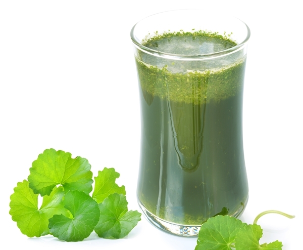 สมุนไพรอีกชนิดคือ บัวบก มีงานวิจัยว่าช่วยลดผลกระทบจากรังสี เช่น การรับรสที่ผิดไป และน้ำหนักตัวที่ลดลงในหนูที่ได้รับรังสี โดยมีกลไกในการปกป้องเซลล์ ทั้งระดับ DNA และโครโมโซม มีการวิจัยโดยการใช้สารสกัด ทั้งน้ำและแอลกอฮอล์ของบัวบก ยังไม่มีการศึกษาในคน แต่เมื่อเทียบงานวิจัยในหนูมาเป็นคน ก็กินบัวบกใบเล็กที่มีสารสำคัญทางยาสูงประมาณ 1 ขีด ปั่นกับน้ำสะอาด การกินต่อเนื่องต้องระวังความเย็นที่ทำให้ท้องอืดเฟ้อได้ การกินในงานวิจัยใช้ไม่เกิน 1-2 เดือน