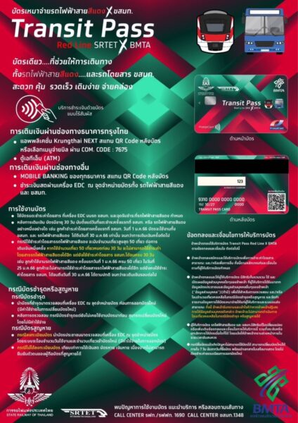 การรถไฟแห่งประเทศไทย (รฟท.) องค์การขนส่งมวลชนกรุงเทพ (ขสมก.) และธนาคารกรุงไทย ร่วมผลักดัน “บัตรเหมาจ่าย” เพื่อชำระค่าโดยสารรถไฟฟ้าสายสีแดง และรถโดยสาร ขสมก. ด้วยบัตรเดียว ราคาเดียว 2,000 บาทต่อเดือน ยกระดับคุณภาพบริการ ลดภาระค่าใช้จ่ายในการเดินทาง