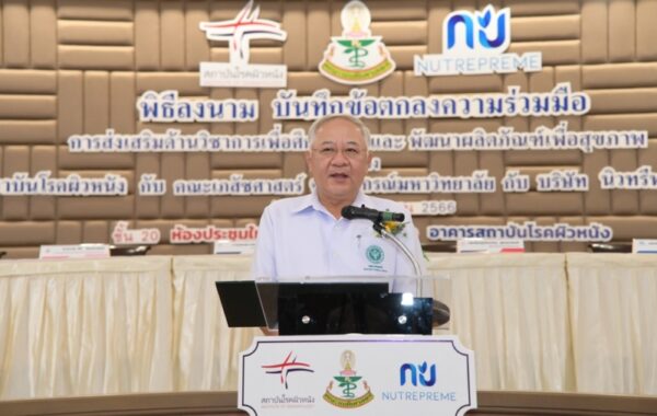 วันอังคารที่ 18 เมษายน พ.ศ.2566 เวลา 13.00 – 14.30 น. ณ ห้องประชุมมิ่งขวัญ วิชัยดิษฐ์ สถาบันโรคผิวหนัง กรุงเทพมหานคร 3 องค์กรชั้นนำผลึกกำลังคิดค้นวิจัยและพัฒนาผลิตภัณฑ์สุขภาพ ได้แก่ สถาบันโรคผิวหนัง กรมการแพทย์ คณะเภสัชศาสตร์ จุฬาลงกรณ์มหาวิทยาลัย และ บริษัท นิวทรีพรีม จำกัด ได้ร่วมลงนามในบันทึกข้อตกลงความร่วมมือการส่งเสริมด้านวิชาการเพื่อการศึกษาวิจัยและพัฒนาผลิตภัณฑ์เพื่อสุขภาพ ยกระดับสุขภาพของคนไทยด้วยงานวิจัยนวัตกรรม