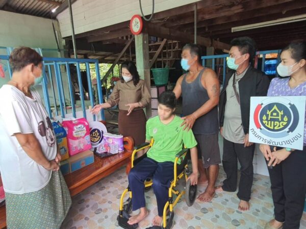 เมื่อวันอังคารที่ 20 มิถุนายน 2566 ที่ผ่านมา นางรักใจ กาญจนะวีระ พัฒนาการจังหวัดนนทบุรี พร้อมทีมงานสำนักงานพัฒนาชุมชนจังหวัดนนทบุรี พัฒนาการอำเภอบางกรวย เจ้าหน้าที่สำนักงานพัฒนาชุมชนอำเภอ และนักศึกษาฝึกงาน เป็นตัวแทนนำกระเช้า เครื่องอุปโภค บริโภค จากนางสาวอโรชา นันทมนตรี รองผู้ว่าราชการจังหวัดนนทบุรี เข้าเยี่ยมครัวเรือนตกเกณฑ์ TPMAP ในพื้นที่บ้านคลองนราภิรมย์ หมู่ที่ 6 ตำบลศาลากลาง อำเภอบางกรวย จังหวัดนนทบุรี และได้อุดหนุนอาชีพของครัวเรือน ในการทำผ้าเช็ดเท้า ซึ่งเป็นผลผลิตจากการส่งเสริมให้ครัวเรือนได้มีอาชีพ จากนั้นได้เดินทางต่อไปยังครัวเรือนตกเกณฑ์ TPMAP ซึ่งเป็นครัวเรือนตกเกณฑ์จากข้อมูล จปฐ. ปี 2565 โดยครัวเรือนดังกล่าวตกเกณฑ์ด้านการศึกษา โดยมีนายสัญชัย ถิ่นน้อย ผู้ใหญ่บ้านหมู่ที่ 6 ตำบลศาลากลาง อำเภอบางกรวย นำคณะเจ้าหน้าที่ลงพื้นที่ครัวเรือนดังกล่าว พร้อมกันนี้สำนักงานพัฒนาชุมชนอำเภอได้ได้บูรณาการกับภาคี นำผ้าอ้อมสำเร็จรูป นม และเสื้อผ้าที่ได้รับบริจาคจากผู้มีจิตศรัทธา นำมาส่งต่อยังครัวเรือนเป้าหมาย เพื่อใช้ประโยชน์ต่อไป