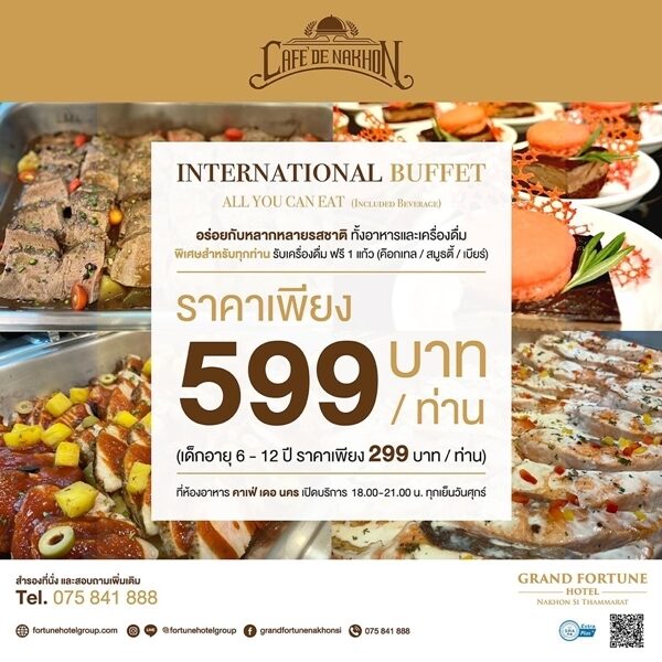 โรงแรมแกรนด์ ฟอร์จูน นครศรีธรรมราช เอาใจสายบุฟเฟ่ต์ตามคำเรียกร้อง จัดความอร่อยแบบเต็มอิ่มหลากหลายเมนูอาหารและเครื่องดื่ม