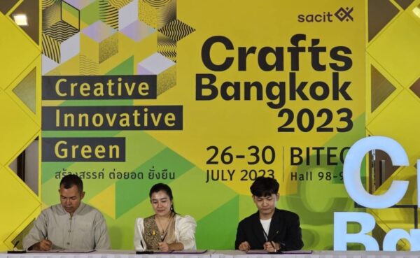 โดยได้มีการจัดพิธีลงนามความร่วมมือในโครงการวิจัยและพัฒนาเพื่อยกระดับคุณภาพผลิตภัณฑ์ศิลปหัตถกรรมไทย กิจกรรมยกระดับคุณภาพผลิตภัณฑ์ศิลปหัตถกรรมไทย ต่อยอดงาน “วิจัย” สู่เชิงพาณิชย์ เพื่อผลักดันและพัฒนาผลิตภัณฑ์ต้นแบบทั้ง 5 ให้สามารถต่อยอดได้ทั้งในด้านการผลิต และด้านการตลาดต่อไป เมื่อวันที่ 26 กรกฎาคม 2566 ภายในงาน Craft Bangkok 2023