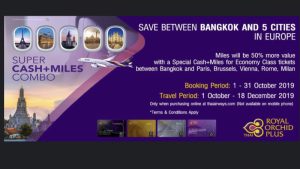 – เส้นทางไป-กลับ กรุงเทพฯ สู่ ปารีส บรัสเซลส์ เวียนนา มิลาน โรม ใช้จำนวนไมล์สะสมเริ่มต้นที่ 13,000 ไมล์ และเพิ่มเงิน 13,000 บาท (ไม่รวมภาษีสนามบินและค่าธรรมเนียมทุกประเภท)