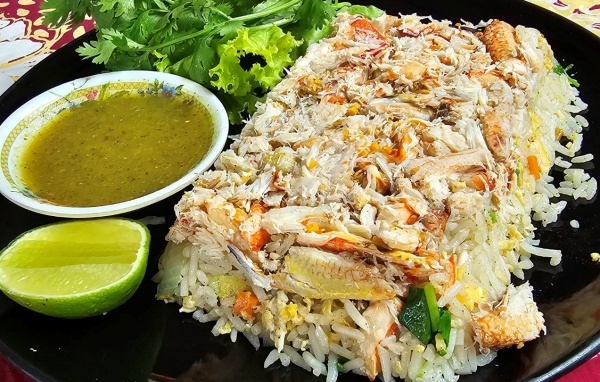 และแล้วก็ถึงช่วงเวลาอาหารกลางวัน พี่อูม – หนึ่งฤทัย เหลนเจ้าเมืองยะหริ่ง เจ้าของธุรกิจร้านอาหารข้าวผัดปูพี่อูม ร้านชื่อดังที่มีถึง 4 สาขา ด้วยข้าวผัดปูที่มีปูอู้ฟู่เต็มจาน ส่วนคณะของเราทุกคนได้รับทานข้าวยำฝีมือ เหลนเจ้าเมียง ไม่ได้ทำขาย แต่ทำให้ชิมกันเป็นกรณีพิเศษ