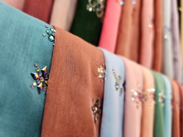 ที่บอกว่า ชื่อดังเพราะ เป็นเจ้าแรกและเจ้าเดียวที่นำคริสตัลของสวารอฟสกี้ (Swarovski) ลิขสิทธิ์นำเข้าจากออสเตรเลีย มาประดับตกแต่งให้เข้ากับผ้า”ฮิญาบ” นำเข้าจากญี่ปุ่น เพื่อให้ได้สีสันสวยงามและมีคุณภาพ โดยให้ดีไซเนอร์ชาวไทยเป็นผู้ออกแบบ นั่นทำให้งานแต่ละชิ้นราคาจึงแตกต่างกัน ขึ้นอยู่กับ แบบของงาน จำนวนคริสตัลที่ตกแต่ง และการดีไซน์ บางชิ้นจากหลักร้อย จนทยานขึ้นไปสูงถึงหลักแสน