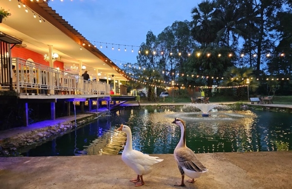 หลังจากนั้น ก็ได้เวลาอาหารค่ำกับมื้ออร่อยของร้านบ้านสวนมายาวีร์ ที่นี่กว้างขวางด้วยเนื้อที่และบรรยากาศ