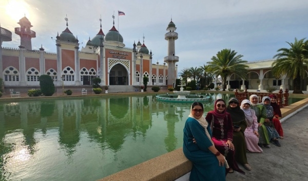 และก่อนจะเข้าไปที่แห่งนั้น ดร.ชลต พาเราเข้าไปพบกับคุณนับ – นารีนาถ มั่นใจเกษตร เจ้าของแพร้านอาหารมายาวีร์ และบ้านสวนมายาวีร์ ซึ่งนอกจากจะมีร้านอาหารแล้ว ยังมีชุดมุสลิม ฮิญาบ ให้เช่า ซึ่งกลุ่มของเราได้รับความเอื้อเฟื้อให้ยืมสวมใส่แปลงกายเป็นสาวมลายูก่อนจะเข้าไปที่มัสยิด