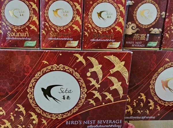 ถัดจากนั้นเราเดินทางกันต่อเพื่อเข้าชมโรงงานผลิตรังนกแท้ แบรนด์ “แหลมทองรังนกไทย” โดยคุณธานัท เด่นสันติกุล หรือคุณแบงค์ ผู้บริหารซึ่งเป็นทายาทที่เข้ามาสานต่อธุรกิจที่มีมานานหลายสิบปี ปัจจุบันธุรกิจแบรนด์รังนกแท้ ที่ชื่อ แหลมทองรังนกไทย เติบโตขยายปีกออกไปมากมาย โดยผลิตภัณฑ์มีหลายแบบบรรจุขวด ซึ่งมีทั้งแบบสเตอริไลซ์ และแบบพาสเจอไรซ์ รวมทั้งรังนกต้มสดกับใบเตยที่ส่งกลิ่นหอมฉุยรสชาติดีปรุงสดโดยเชฟแบงค์ผู้บริหารที่นำเสนอให้คณะของเราได้ชิมกันถ้วนหน้า