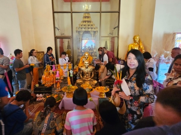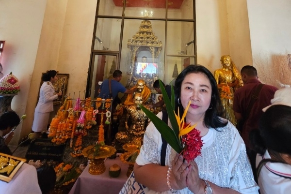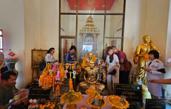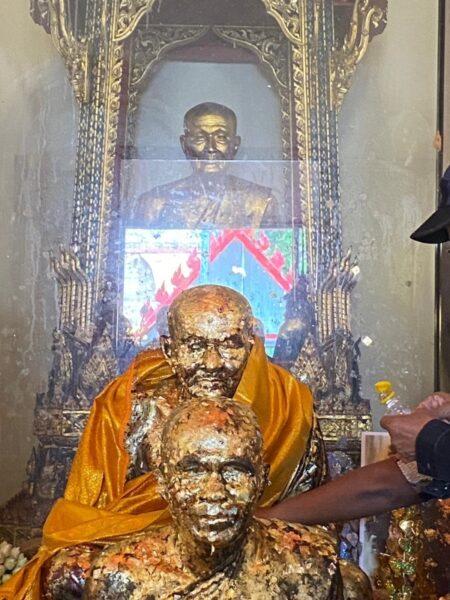 “วันนี้วันที่ 9 เดือน 9 ถือว่าเป็นวันดีมาก” หนึ่งในคณะเอ่ยขึ้น พลางนำดอกไม้ธูปเทียนสักการะองค์หลวงปู่ทวดและปิดทองเพื่อเป็นสิริมงคล