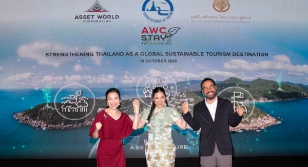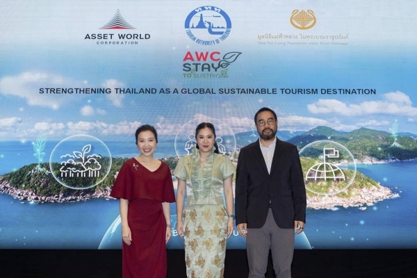 เมื่อวันที่ 10 ต.ค. 2566 ที่ผ่านมา นางสาวฐาปนีย์ เกียรติไพบูลย์ ผู้ว่าการการท่องเที่ยวแห่งประเทศไทย ให้เกียรติร่วมงานแถลงข่าว เปิดโครงการ “AWC Stay to Sustain” เพื่อสนับสนุนประเทศไทยเป็น ‘จุดหมายปลายทางการท่องเที่ยวยั่งยืนระดับโลก’ ณ โรงแรม แบงค็อกแมริออท เดอะ สุรวงศ์ โดยมีนางวัลลภา ไตรโสรัส ประธานเจ้าหน้าที่บริหารและกรรมการผู้จัดการใหญ่ บริษัท แอสเสท เวิลด์ คอร์ป จำกัด (มหาชน) หรือ AWC และหม่อมหลวงดิศปนัดดา ดิศกุล ประธานเจ้าหน้าที่บริหาร มูลนิธิแม่ฟ้าหลวง ในพระบรมราชูปถัมภ์ ร่วมแถลงข่าวฯ