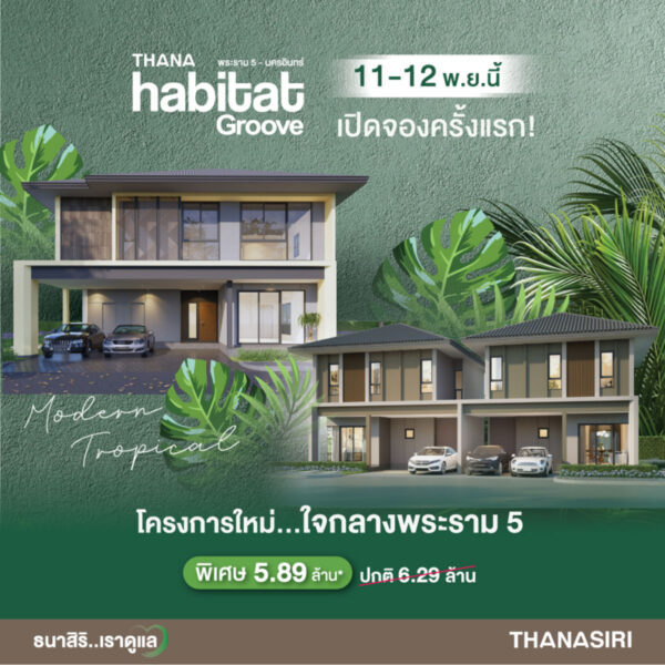 THANA เดินหน้าพัฒนาโครงการที่อยู่อาศัยครอบคลุมพื้นที่นนทบุรี รองรับดีมานด์จากการขยายตัวของคนเมือง และทำเลการอยู่อาศัยที่หนาแน่นสู่นนทบุรีเมืองหลวงชั้นนอก พร้อมส่งโครงการใหม่ การันตีความสำเร็จด้วยแบรนด์เรือธง ธนาฮาบิแทต กรู๊ฟ พระราม 5 – นครอินทร์ มูลค่า 830 ล้านบาท จำนวน 123 หลัง พรีเซลเฟสแรก 11-12 พ.ย. นี้ บ้านสไตล์โมเดิร์นทรอปิคัล เจาะกลุ่มลูกค้าเจนวาย เสาหลักของบ้านที่ต้องการขยายครอบครัว เริ่มต้นเป็นพิเศษ 11.11 นี้เท่านั้น 5.89 ล้านบาท*
