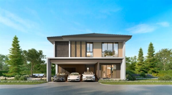 ธนาฮาบิแทต กรู๊ฟ พระราม 5 – นครอินทร์ มูลค่า 830 ล้านบาท เนื้อที่ 22-3-47.1 ไร่ จำนวน 123 หลัง ประกอบด้วยบ้านขนาดใหญ่ พื้นที่ใช้สอย 233.09 ตร.ม. จำนวน 23 หลัง และ บ้านขนาดกลาง พื้นที่ใช้สอย 154.93 ตร.ม. จำนวน 100 หลัง ในแปลงที่ดิน 35.10 – 56.10 ตร.วา สไตล์โมเดิร์นทรอปิคัล (Modern Tropical) ที่เน้นการนำเส้นสายที่เรียบง่ายมาตกแต่ง ส่วน Tropical เป็นตัวแทนสภาพอากาศร้อนชื้น การออกแบบจึงอยู่ที่การเลือกใช้วัสดุที่มีความเป็นธรรมชาติ และโทนสีอบอุ่น มาช่วยสร้างบรรยากาศผ่อนคลาย และให้ความรู้สึกเป็นหนึ่งเดียวกับธรรมชาติ ส่วนการออกแบบพื้นที่ใช้สอย เน้นให้มีพื้นที่ขนาดใหญ่ เพื่อให้ผู้อยู่อาศัยเกิดความรู้สึกโปร่งโล่งสบาย และช่วยระบายความร้อนจากสภาพอากาศได้ดี .. การออกแบบบนความใส่ใจกับการใช้ชีวิตที่ธนาสิริ … เราดูแล