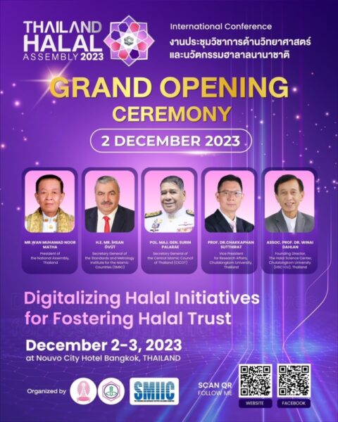 The event marks its 10th year and has been recognized as the premier Halal conference in Thailand, named “Thailand Halal Assembly 2023 (THA2023)” The conference will be held under the theme “Digitalizing Halal Initiatives for Fostering Halal Trust.” It is scheduled to take place on December 2 – 3, 2023 at Nouvo City Hotel (Soi Sam Sen 2), Bangkok, Thailand. This event will serve as a platform for presenting Halal concepts in the digital era, aiming to make Halal more accessible to everyone!!