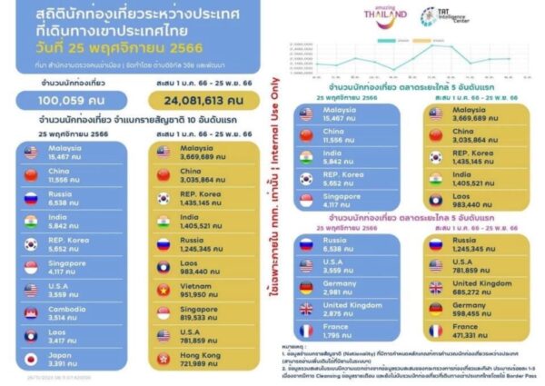 นางสาวฐาปนีย์ เกียรติไพบูลย์ ผู้ว่าการการท่องเที่ยวแห่งประเทศไทย เผยบรรยากาศการท่องเที่ยวไทย ว่า ตอนนี้บรรยากาศการท่องเที่ยวไทยฟื้นตัวอยู่ในระดับที่ดี ถึงดีมาก เป้าที่เราตั้งไว้ ที่ 25 ล้านคน + เราได้เห็นแน่นอนและจะเกินไปเท่าไหร่ ไปได้ไกลแค่นั้นก็ต้องให้ credit และขอขอบคุณรัฐบาล สำหรับมาตรการกระตุ้นต่างๆที่ออกมา ขอบคุณคนไทยที่เป็นเจ้าบ้านที่ดี อย่างไรก็ตาม สิ่งหนึ่งในฐานะที่เป็นผู้ทำการส่งเสริมการขายประเทศไทยให้เป็น ที่ 1 ในใจของนักท่องเที่ยวทั่วโลก คือ การให้ความสำคัญกับ เรื่องความปลอดภัย และการบริหารภาพลักษณ์ ด้านการท่องเที่ยวในมิติต่างๆ