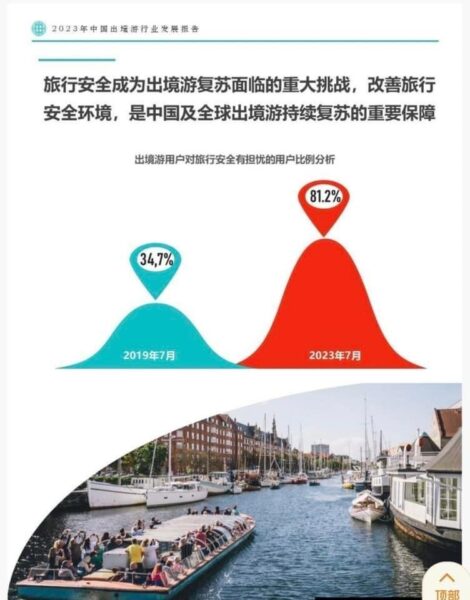 จะเห็นได้จากผลสำรวจล่าสุดปี 2023 ของประเทศจีน ซึ่งเป็นตัวอย่างที่ทำให้เห็นชัดว่า นักท่องเที่ยวให้ความสำคัญเรื่องความปลอดภัยเพิ่มขึ้นมากจริงๆ ในปี 2023 คิดเป็น 81.2 % เทียบปี 2019 อยู่ที่ 34.7% เท่านั้น