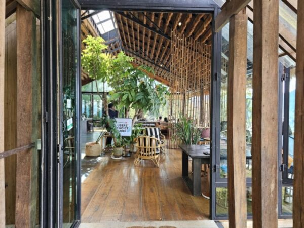 ด้วยตัวอาคารสีขาว การตกแต่งด้วยโทนอบอุ่นปูทางเดินเข้าร้านด้วยต้นไม้ทรงเตี้ย เผยให้เห็นอาคารชัดเจน และเมื่อเข้าสู่ด้านใน จะแบ่งโซนเป็นอินดอร์และเอาท์ดอร์