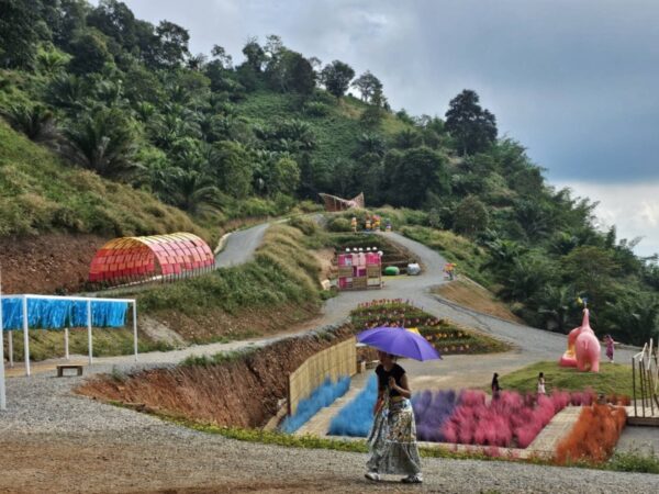 อีกแห่งที่ไม่ควรพลาดการเช็คอิน สำหรับผู้ที่ชื่นชอบสีสันและความสวยงามของดอกไฮเดรนเยีย ที่นี่ดอกไม้บานสะพรั่งอวดสีสันเต็มลานเนินภู จะเลือกมุมไหนก็ไม่ผิดหวัง เริ่มกันตั้งแต่ทางเข้าก็จัดสรรซุ้มสีขาวรอต้อนรับนักท่องเที่ยว มีมุมชิงช้า มุมตู้โทรศัพท์ มุมรถทรัค