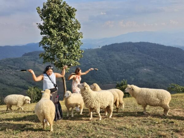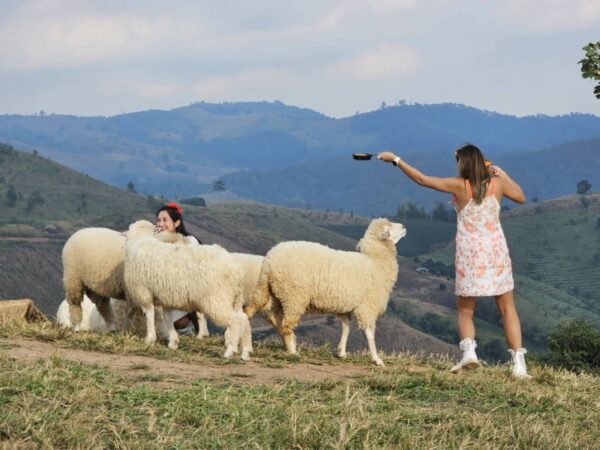 และอื่นๆ ที่ได้ฟังจากเจ้าหน้าที่มาตั้งแต่ต้น แต่พอถึงเวลาจริงๆ เราได้ยินเสียงกรี๊ดๆ พร้อมเสียงหัวเราะดังลั่นฟาร์ม เพราะมัวแต่สาละวนกับการให้อาหารแกะจากตัวหนึ่ง และอีกตัว … อีกตัว เพลินใจดีแท้