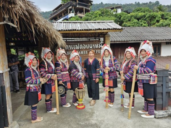คุณผกากานต์ รุ่งประชารัตน์ เจ้าของร้านกาแฟและอาหาร ดอยผาหมี ประธานวิสาหกิจชุมชนกาแฟดอยผาหมี ลูกหลานชนเผ่าที่รวบรวมวิถี ศิลปะวัฒนธรรมอาหารการกิน และนำมาต่อยอดเป็นร้านกาแฟและอาหาร ดอยผาหมี ที่เลื่องชื่อ นอกจากจะมาแนะนำอาหารชนเผ่าอาข่าพื้นเมืองขนานแท้ใส่ในภาชนะกระบอกไม้ไผ่ ไม่ว่าจะเป็นรากชูหมู น้ำพริกหมูรากชู ผัดไข่รากชู ลาบหมูรากชู อาหารรสมือแม่ที่ทำให้เจ้าของร้านทานมาตั้งแต่จำความได้ สามารถจำหน่ายเป็นเซ็ตไว้ให้บริการสำหรับใครต้องการ