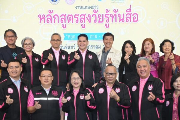 นายวราวุธ กล่าวต่อไปว่า กระทรวง พม. โดยกรมกิจการผู้สูงอายุ (ผส.) จึงได้ร่วมมือกับภาคีเครือข่าย 3 หน่วยงาน ได้แก่ มหาวิทยาลัยมหิดล กลุ่มคนตัว D บริษัท ทำมาปัน จำกัด และสำนักงานกองทุนสนับสนุนการสร้างเสริมสุขภาพ (สสส.) พัฒนาหลักสูตรสูงวัยรู้ทันสื่อ “หยุด คิด ถาม ทำ” เพื่อนำมาใช้เป็นหลักสูตรแกนกลางของโรงเรียนผู้สูงอายุ จำนวน 2,456 แห่งทั่วประเทศ ผ่านหลักการสำคัญ 4 ข้อ ได้แก่ 1) การรู้จักและเข้าถึงสื่อ ผู้รับสารสามารถเลือกใช้สื่อได้ตามที่ต้องการ 2) การวิเคราะห์ทำความเข้าใจสื่อ ผู้รับสารสามารถทำความเข้าใจหรือตีความข้อมูลที่สื่อส่งมาได้ 3) การประเมินผลกระทบจากสื่อ ผู้รับสารสามารถประเมินผลกระทบทั้งด้านบวกและด้านลบได้ และ 4) การใช้สื่ออย่างปลอดภัย ผู้รับสารสามารถใช้ข้อมูลนั้นต่อไปอย่างปลอดภัย ซึ่งที่ผ่านมาได้มีการทดลองหลักสูตรโดยจัดอบรมวิพากษ์หลักสูตรในพื้นที่โรงเรียนผู้สูงอายุ จำนวน 3 ครั้ง ได้แก่ ครั้งที่ 1 ณ โรงเรียนผู้สูงอายุตำบลพลูตาหลวง อ.สัตหีบ จ.ชลบุรี ครั้งที่ 2 ณ โรงเรียนผู้สูงอายุเทศบาลตำบลไทรโยค อ.ไทรโยค จ.กาญจนบุรี และครั้งที่ 3 ณ โรงเรียนผู้สูงอายุเทศบาลตำบลด่านช้าง อ.ด่านช้าง จ.สุพรรณบุรี