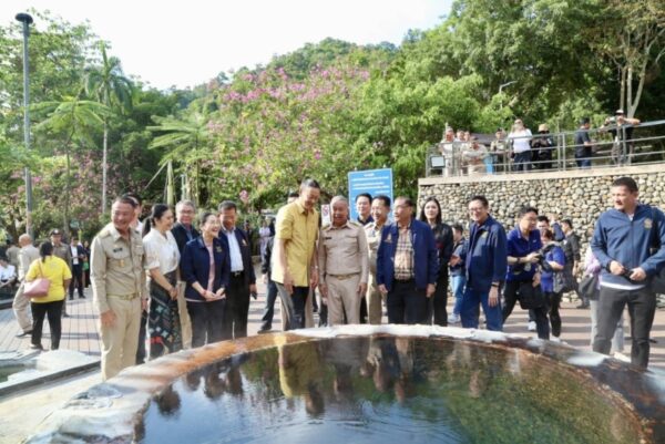 ต่อมา ท่านนายกรัฐมนตรี รัฐมนตรีว่าการฯ ผู้ว่าการททท. และคณะทำงาน ได้ออกเดินทางไปยังบ่อน้ำร้อนรักษะวาริน ในอำเภอเมืองระนอง ซึ่งเป็นบ่อน้ำแร่ร้อนที่เกิดขึ้นเองตามธรรมชาติ เป็นสถานที่ท่องเที่ยวสำคัญของจังหวัดที่มีการชูอัตลักษณ์ชุมชน โดยได้เยี่ยมชมการบริหารจัดการและส่งเสริมการท่องเที่ยวเชิงสุขภาพแบบอนุรักษ์สิ่งแวดล้อม เพื่อให้ชุมชนสามารถสร้างรายได้และพึ่งพาตนเองได้ ตลอดจนส่งเสริมการท่องเที่ยวอย่างยั่งยืน ซึ่งรัฐบาลจะผลักดันจังหวัดระนองสู่การเป็นแหล่งท่องเที่ยวเชิงสุขภาพชั้นนำของโลก (Wellness City) ต่อยอดพัฒนาการท่องเที่ยวไทยอย่างยั่งยืน เพื่อสร้างจุดแข็งและนำรายได้เข้าประเทศ